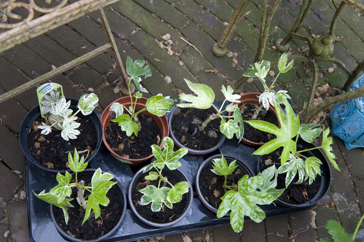 Stekken, maar ik heb ze via ebay gekocht, stevige stekken moet ik zeggen. Ik heb nu zelf wel een groene fatsia gestekt. Je neemt een stekje van een houtige twijg, in de stekpoeder dopen en dan in de aarde, in een kasje ofzo. Ik heb er transparant folie over gedaan en binnen een paar weken heb je wortels aan je stek.