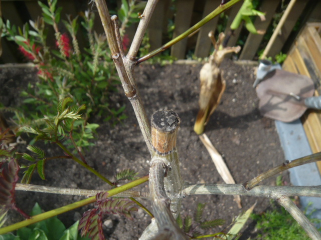 De stam was afgeknipt en grijs geverft en de vertakking zaten vol blad.