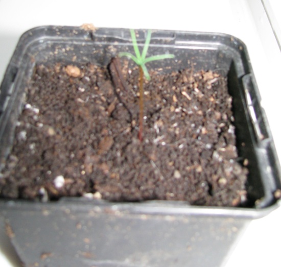 Vandaag is mijn eerste Sequoia giganteum boompje uitgekomen. Of beter gezegd heb ik het zopas opgemerkt. Hij is inmiddels enkele centimeters hoog. :D Deze boom groeit tot tien meter in de eerste tien jaar! Ik zal hem dus niet naast m'n vijvertje moeten planten, of zelfs helemaal niet in de tuin. Ik hoop hem in een pot zolang mogelijk te behouden.
