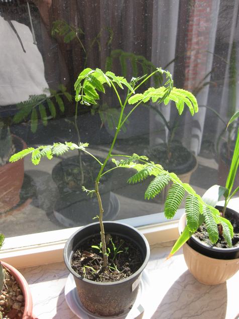 Hier een foto van mijn albizia op de vensterbank is toch al een 15 cm gegroeid nu en was vorig jaar iets opgevallen ,