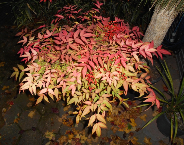 Mijn nieuwste aanwinst is Nandina domestica, de verleiding bij de aanblik van dit kleurrijke struikje was te groot. Bovendien is het de tijd van najaarskortingen. Dus is het zaak hier altijd naar te informeren. Nu draagt deze plant bessen en ik begrijp dat van Nandina zowel een- als tweehuizige selecties bestaan. De tijd zal leren welke versie deze is. Meest waarschijnlijk lijkt mij dat het de eenhuizige variant betreft.