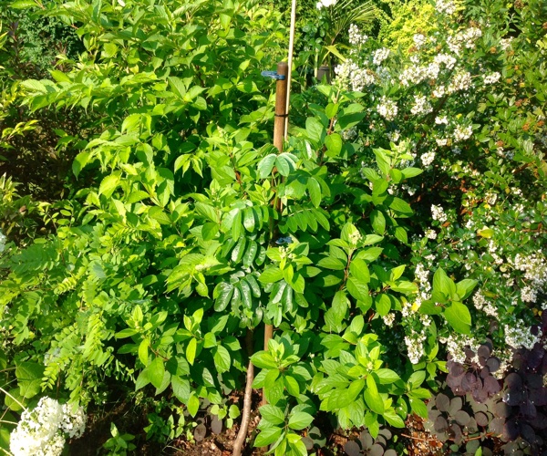 Dit jaar heb ik de stoute schoenen aangetrokken en 'm in de volle grond gezet. De bedoeling van dit project is te kijken of een Cassia met wat bescherming door de winter getrokken kan worden. Hij heeft prachtig donkergroene bladeren. Het zou mooi zijn als je er een hoogstam boompje van kan maken, vergelijkbaar met een Catalpa boom, waar je een sterke groeikern in kweekt door 'm elk jaar terug te snoeien.