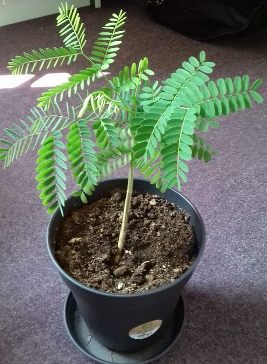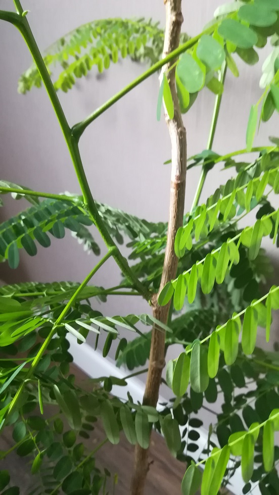 Nu vier jaar verder krijgt het boompje voor het eerst zijtakken waar tot nu toe altijd een blad direct op de stam groeide groeit er nu blad op de zijtakken.
