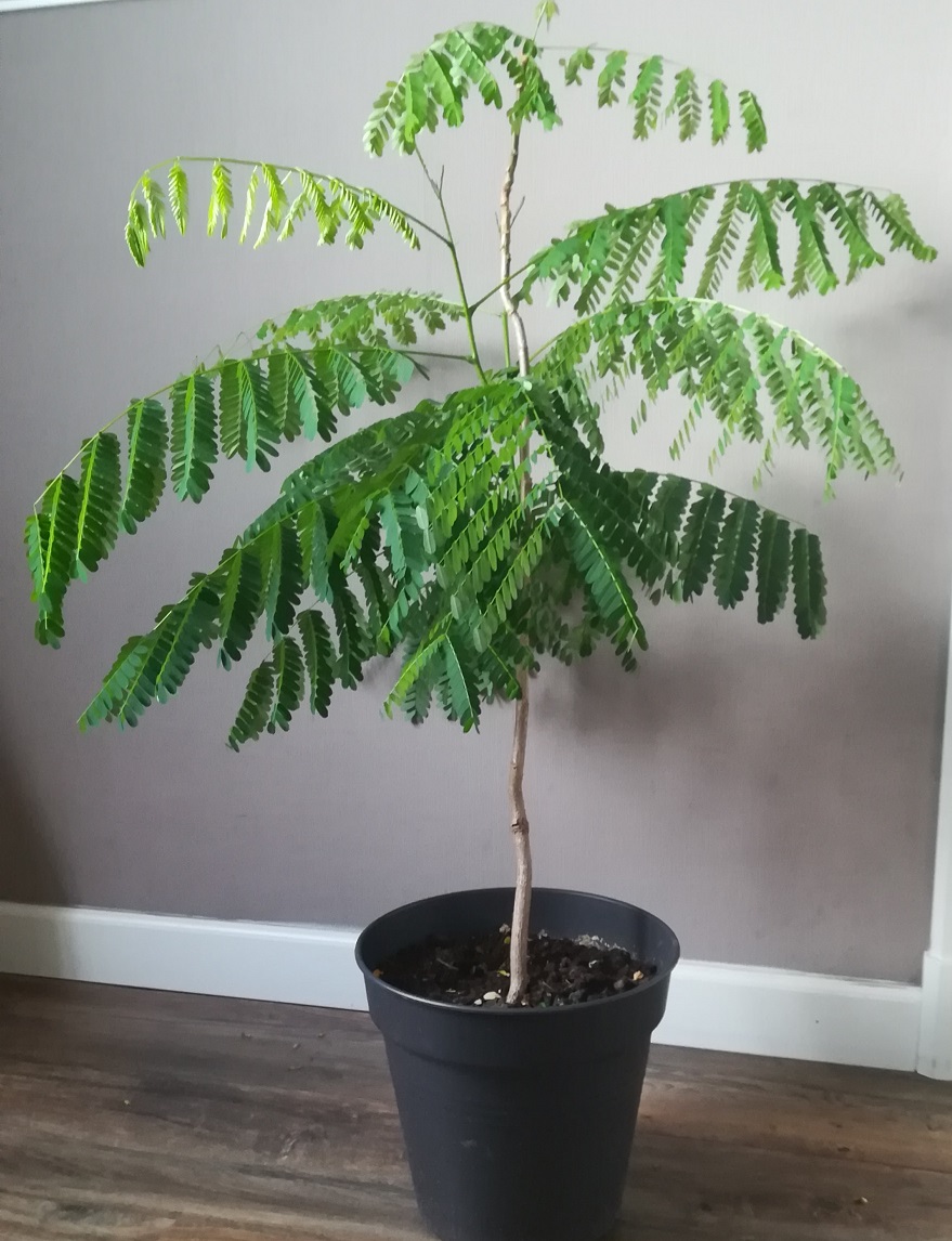 Mijn Delonix regia is ruim veel groter dan 1 meter. Als ik deze niet had getopt weet ik niet hoe groot hij was geweest. De stam wordt in ieder geval steeds iets dikker. Aanstaande 13 september wordt de boom 10 jaar exact.