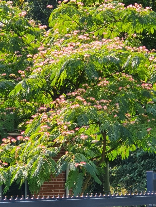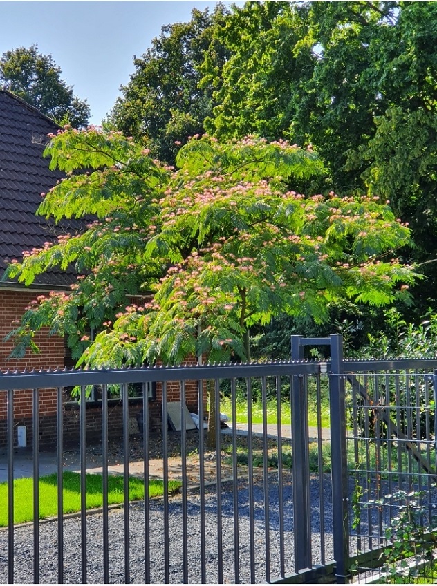 Deze Albizia staat al jaren bij mij een straat verderop.