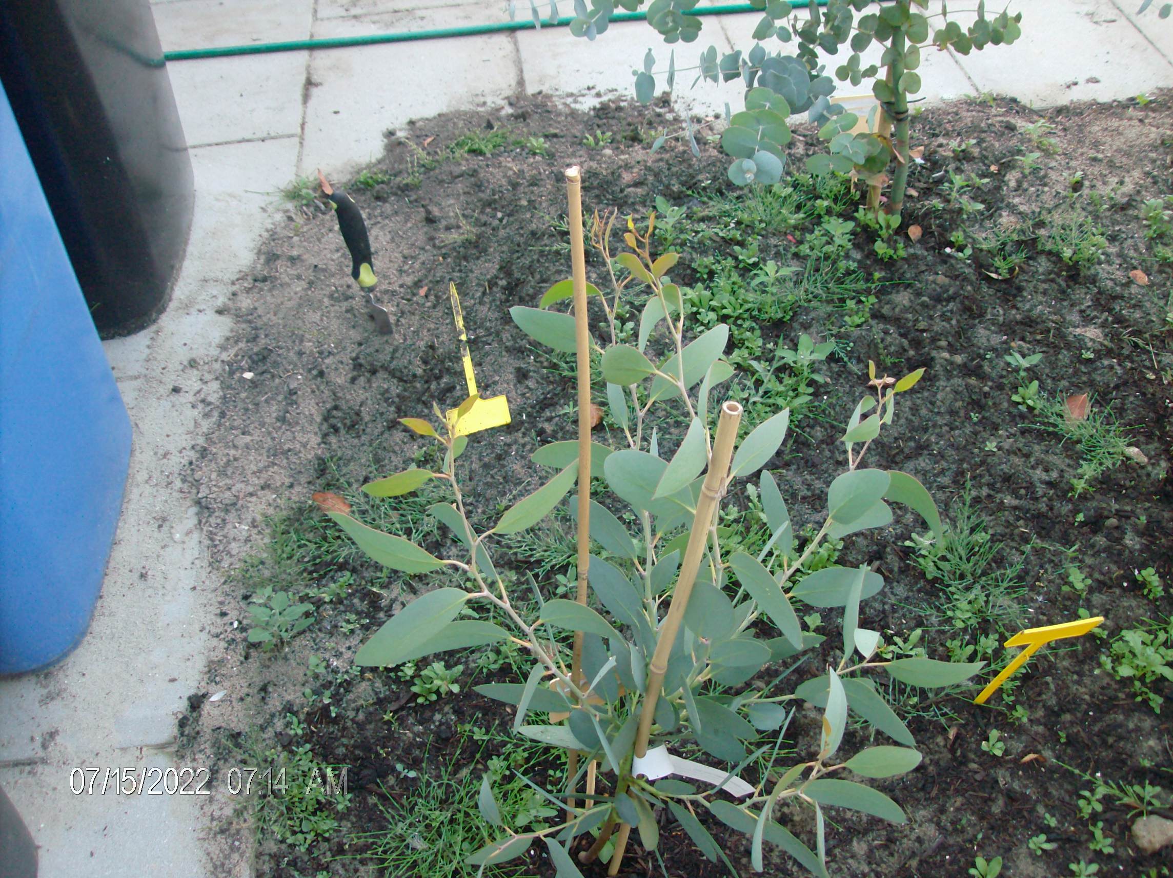 E. camaldulensis was gedeeltelijk doodgevroren in december 2022/januari 2023, maar liep gelukkig opnieuw uit.