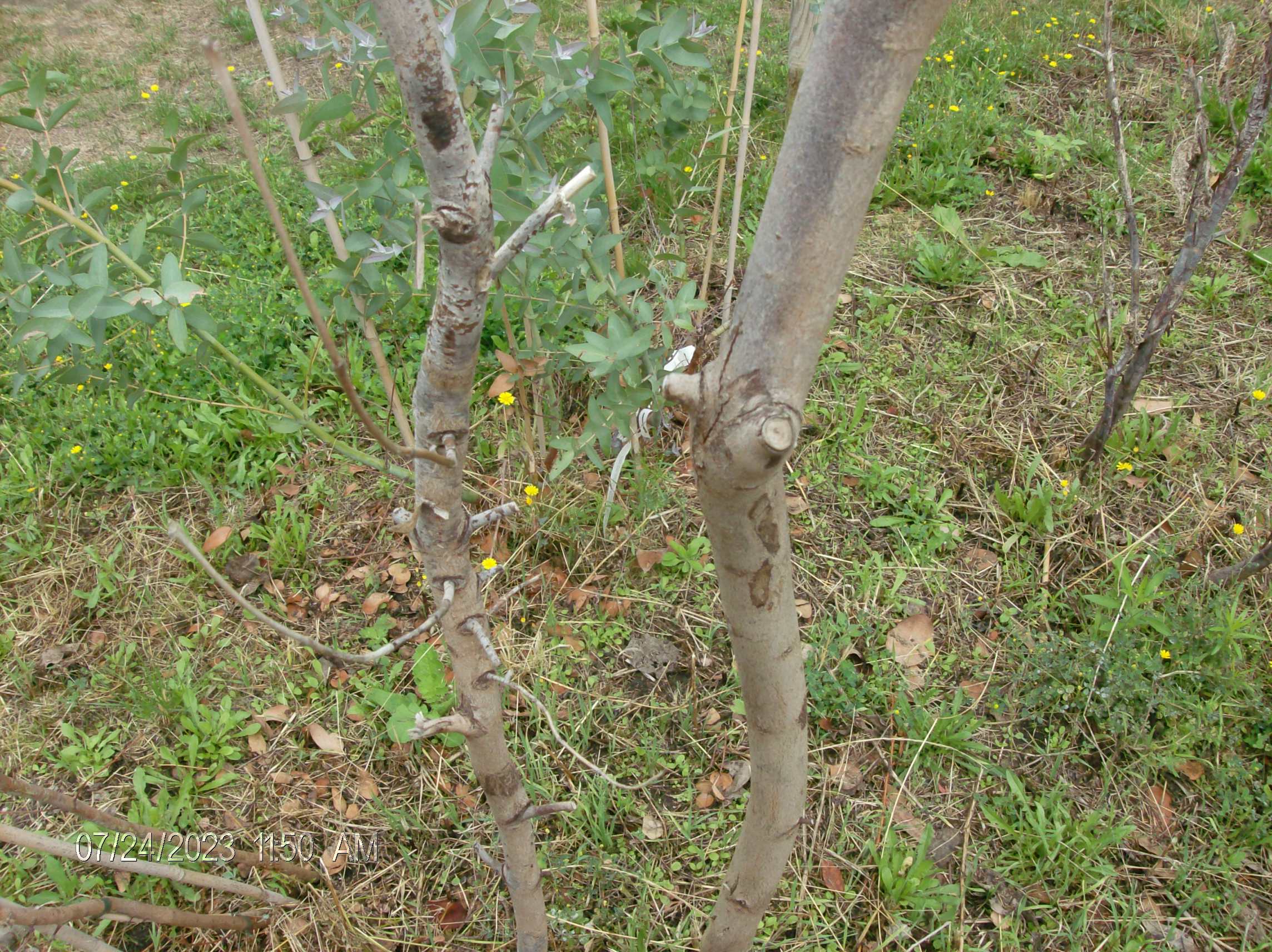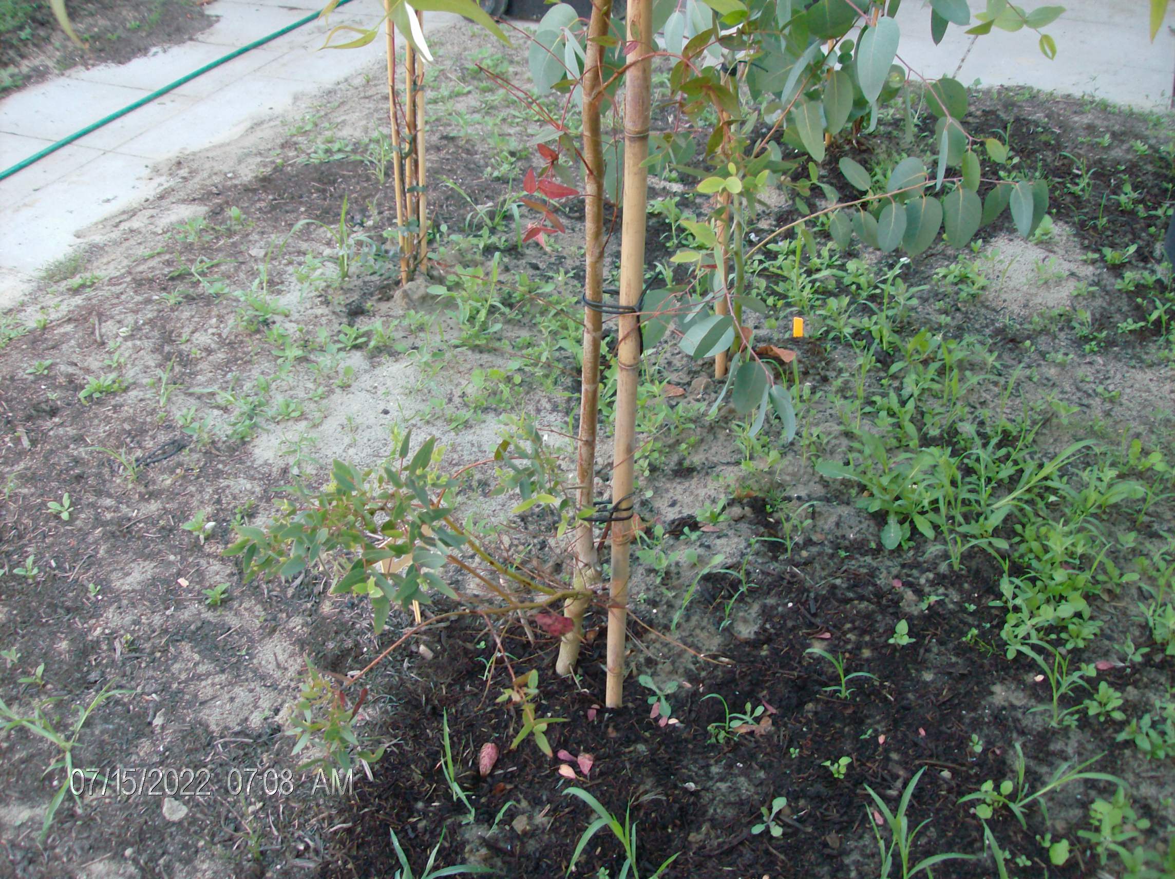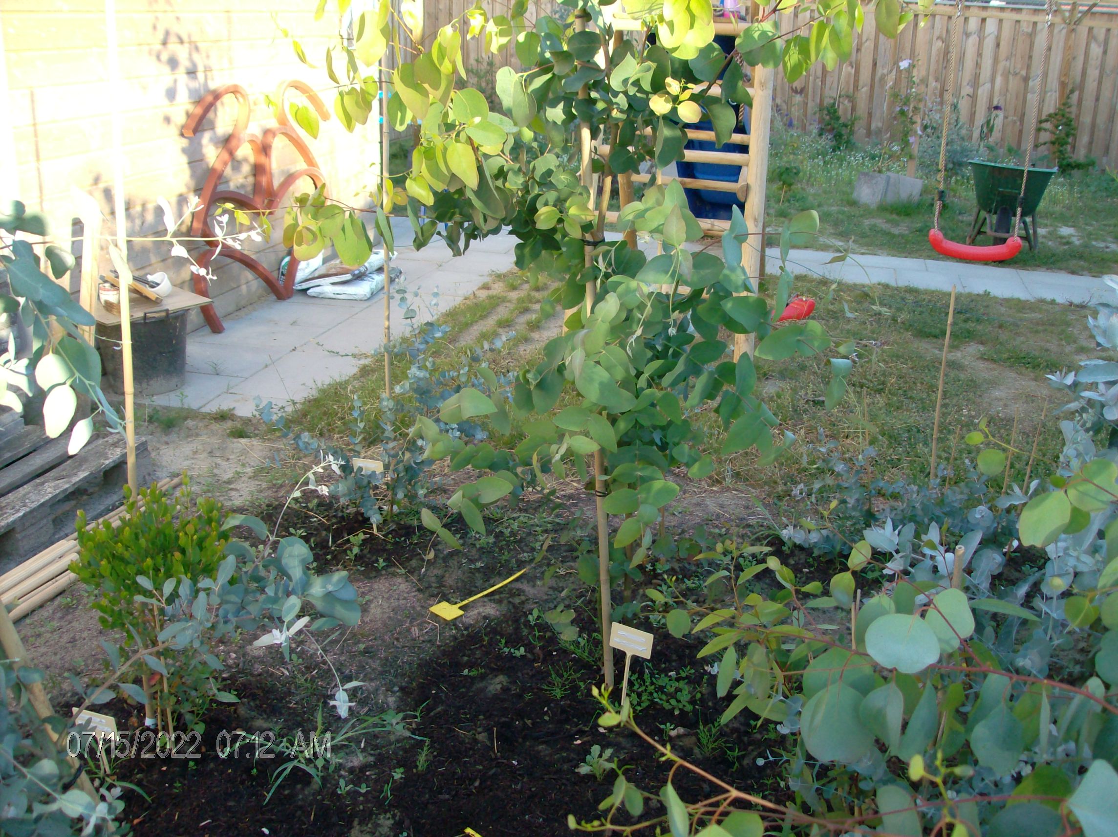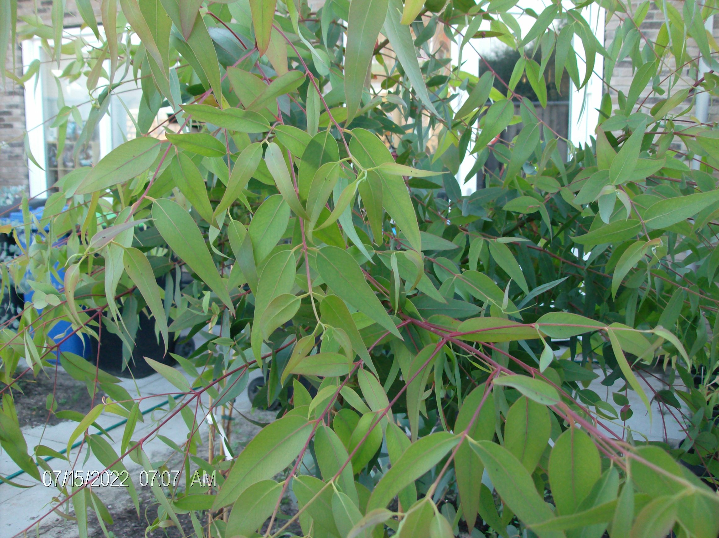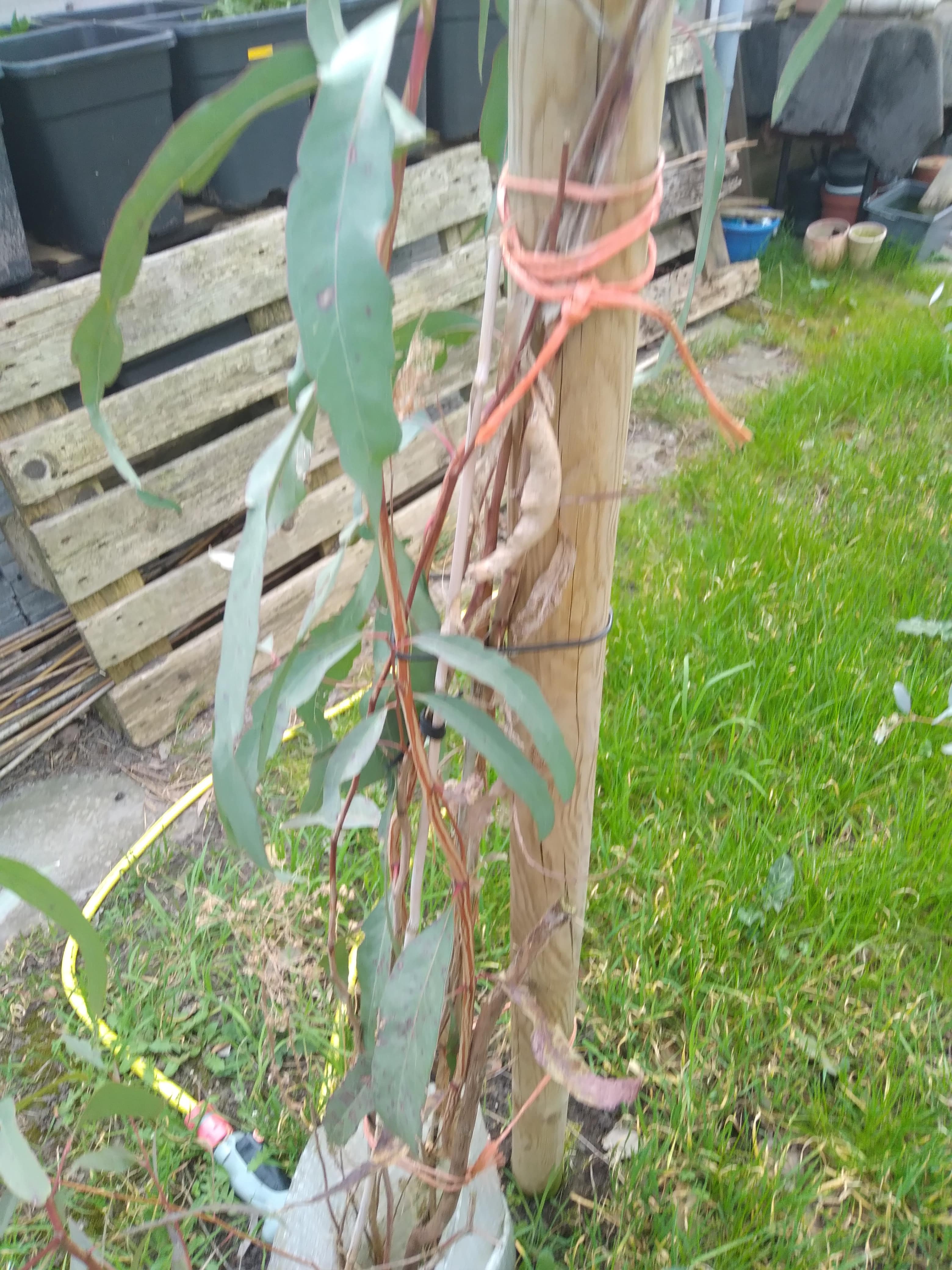 Foto's update Eucalyptus camaldulensis, doodgevroren in winter 2022/2023, voorjaar/zomer 2023 opnieuw uitgelopen, doodgevroren in winter 2023/2024, voorjaar/zomer 2024 opnieuw uitgelopen, winter van 2024/2025 was niet echt winters