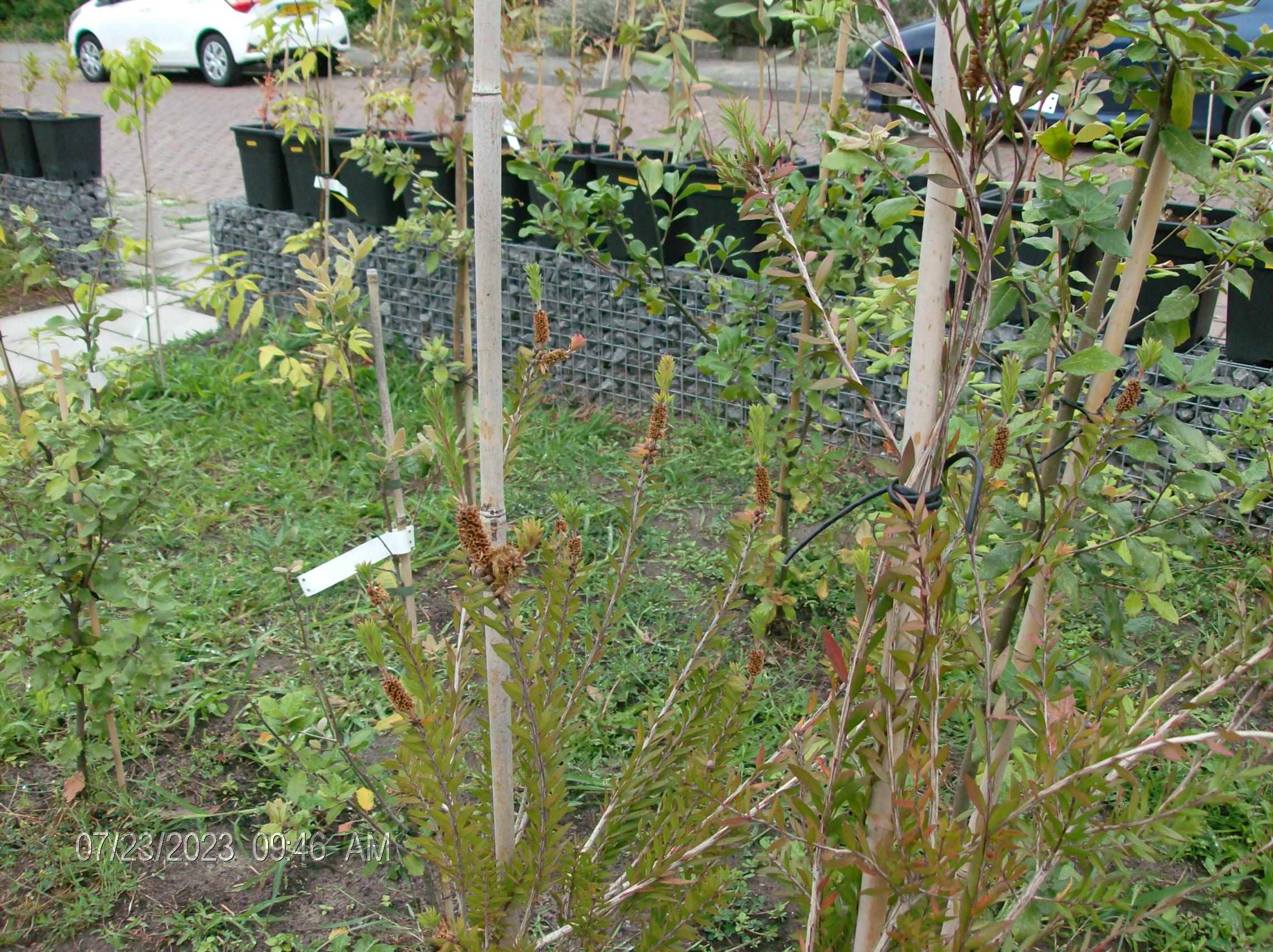 Sinds november 2022 hebben wij twee Callistemon viridiflorus, afkomstig van Tom Devriendt, Creaflora, Tongeren, België, geplant.