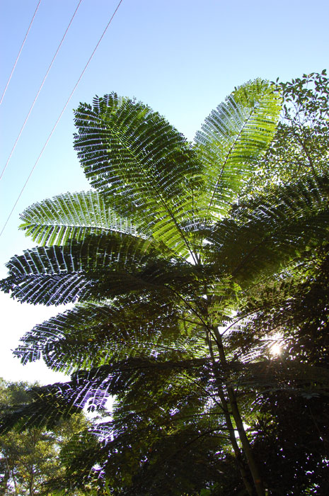 Voor wie eens wat anders wil dan een boomvaren is er de varenboom (Schizolobium parahyba).