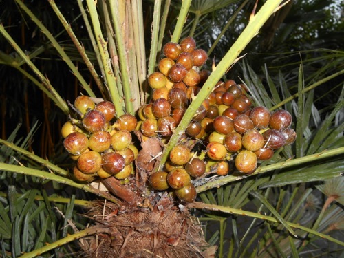De zaden aan deze Chamaerops humilis 'Cerifera' zijn nu bijna een jaar onderweg. Wanneer mogen ze geoogst worden. De pollendonor is een 'gewone' humilis en de zaden zou je hybride kunnen noemen, al is dat waarschijnlijk niet de juiste term voor een kruising binnen de soort.