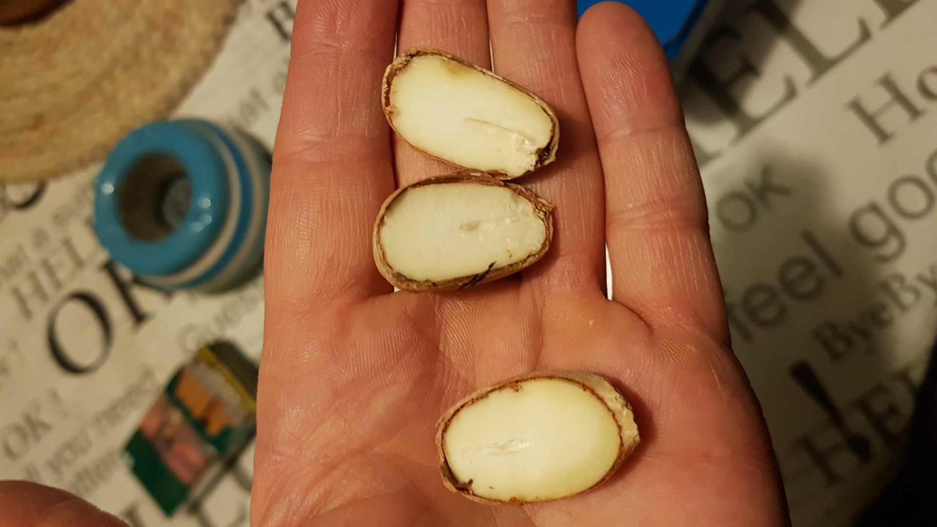 Je kan ook 1 van de zaden opensnijden om te zien hoever de embryo zich ontwikkeld heeft..