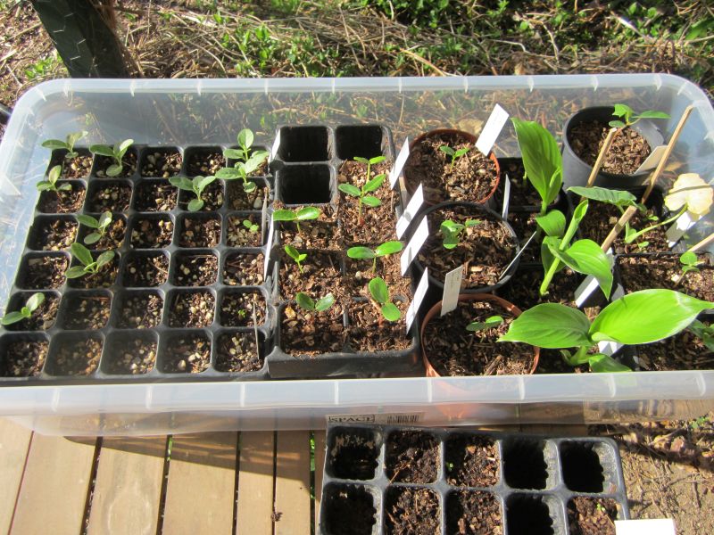 Gewoon ter info; ik heb een hele zooi exoten gezaaid waarvan een gedeelte reeds gekiemd is, te weten: