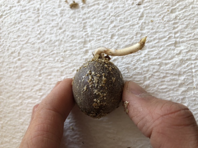 Ik ben kunnen vertrekken van erg verse zaden: het vruchtvlees hing er nog rond. Daarna een maand in vochtig vermiculiet op 30-35 graden. Vroeger gebruikte ik turf om zaden in te kiemen, maar dan kwam er toch altijd snel schimmel opzetten. Ik gok dat vermiculiet sterieler is.