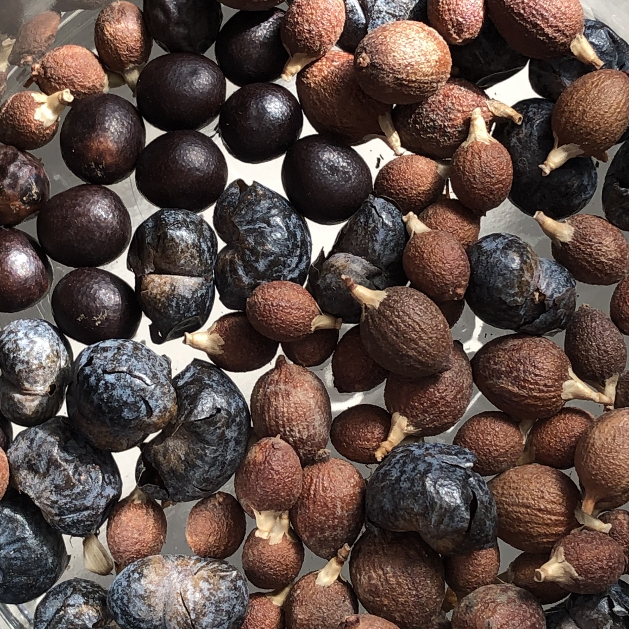 Ik heb het idee dat er ook Sabal zaden tussen zitten - zwart, maar meer een knoopje dan rond (duidelijk afgeplat).