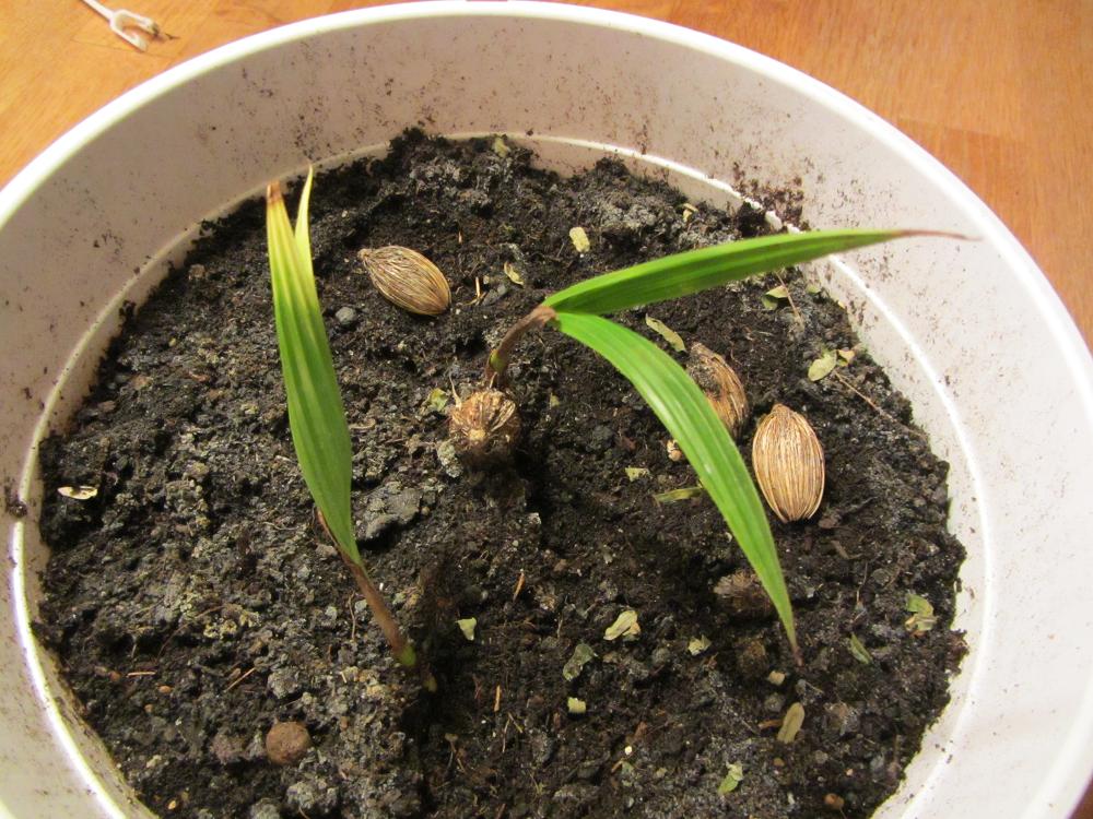 Ook een foto van een palm waarvan ik de zaden ook al had weggegooid maar deze zijn buiten toch begonnen.