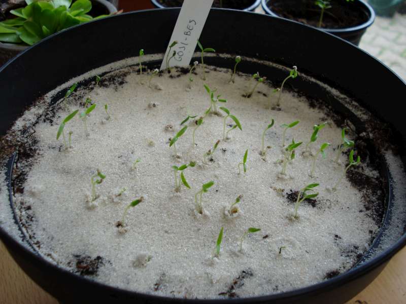 1. Op de plantenmarkt van Sint-Lievens-Houtem stond er een verkoper met gojibes-plantjes. Er lagen gratis zakjes gedroogde goji-bessen (20-tal bessen)... dus... effe testen of het niet te doen was om ze zelf te zaaien!!! :) De minizaadjes zijn superrrrkleverig... bijna labo-werk om dat spul eruit te krijgen... :fluiten: