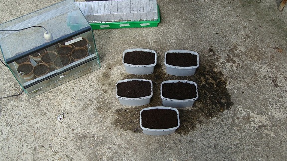 Ik ga alles zaaien in bloembakken met een laagje plastiekfolie en bakjes van de slager, zoals ik met al mijn andere zaden meestal doe. Ik ga er enkele zaaien in neem-coir, perliet en gewone zaaigrond van dcm. Normaal gezien zijn dit koude-kiemers, maar ik ga er toch een deel iets warmer(rond de 25°C) wegzetten, omdat ik gelezen heb dat hier betere resultaten met behaald worden. De rest hou ik in de woonkamer op een 20-21°C. Weken doe ik zeker niet aan mee, ze zouden zeer vers moeten zijn dus totaal overbodig vind ik.