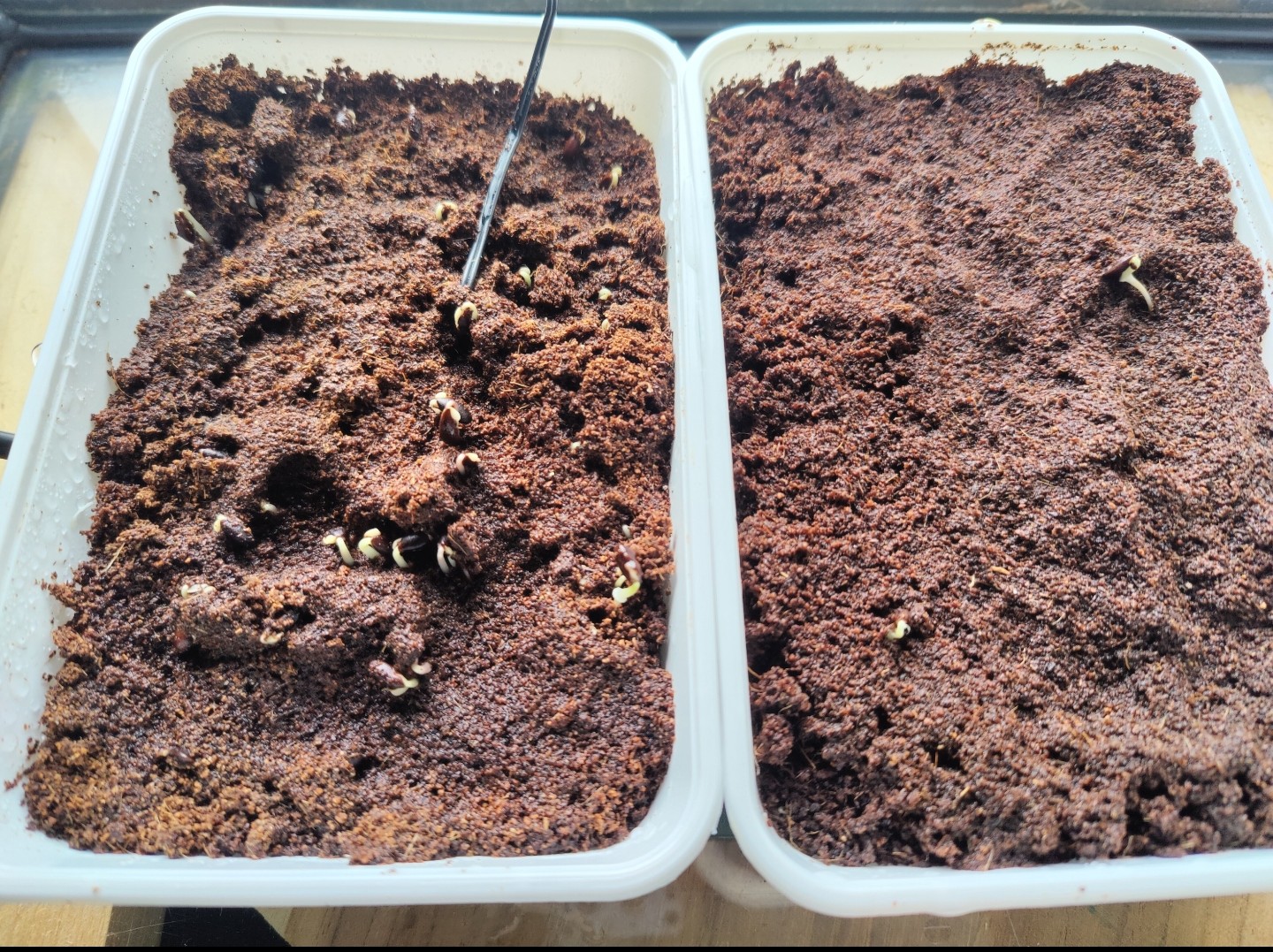 Inmiddels heb ik op 2 manieren geprobeerd de acacia's te zaaien.