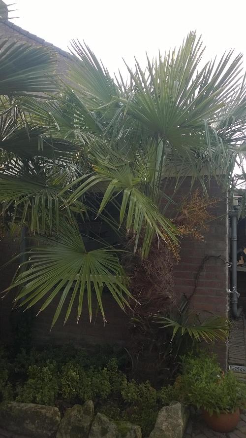 Bij ons in de achtertuin staan ook 2 Trachycarpus palmen. Ik heb eigenlijk geen idee welk soort dit precies is, de fortunei of de wagnerianus. Weet iemand hoe ik erachter kom welke dit is? (zie foto)