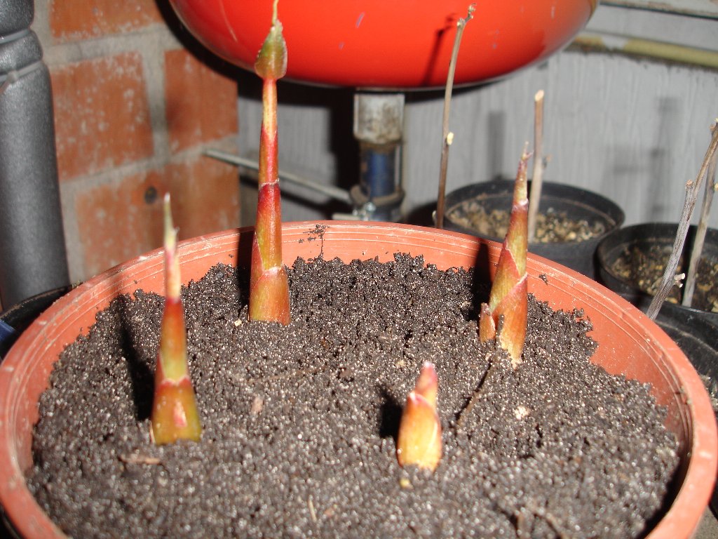 het afgelopen weekend heb ik alles uitgegraven zo ook de greeneii en heb ik de nieuwe plantjes van de moederplant verwijderd wat heel gemakkelijk ging,je kon aan de onderkant reeds het begin van wortelvorming zien en heb ik ze maar meteen opgepot