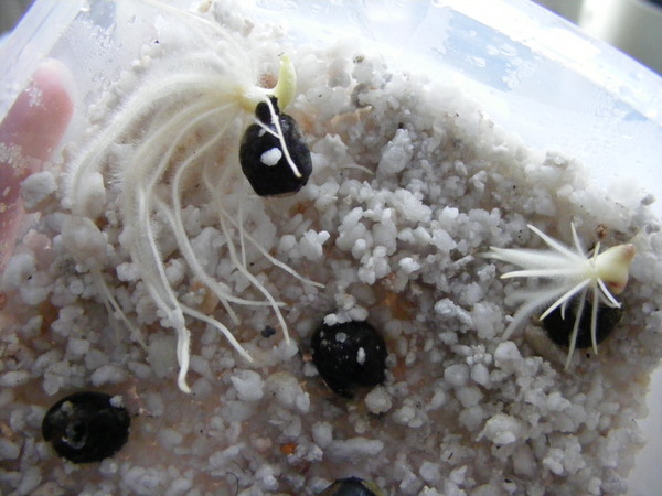 Opkomst na 1 week na het veilen en zaaien in perlite.