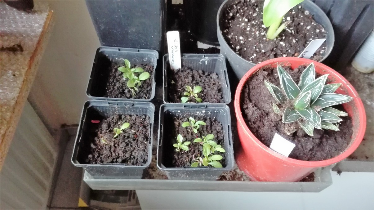 17/12 12 van de 20 zaden Aloe hebben in het water een worteltje gevormd en zijn verpot naar cactusaarde. De 2de cruciale stap want van de eerste batch maar 1 plant kunnen redden tot nu toe.