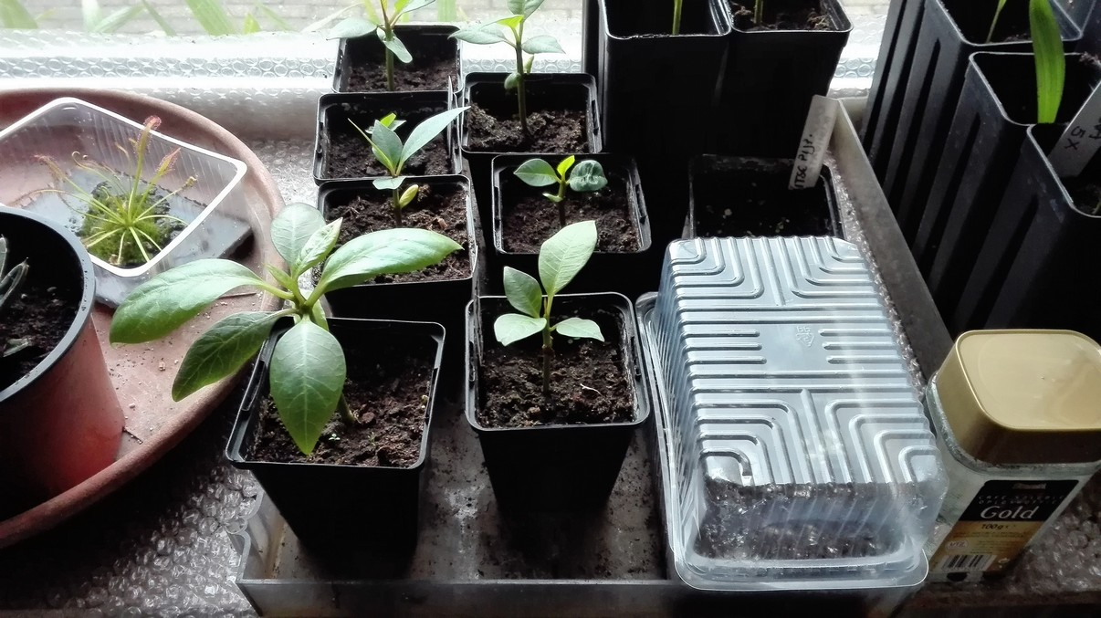 Enkele foto's van momentele kweekprojecten en een totaal overzicht van planten uit eigen kweek van dit jaar