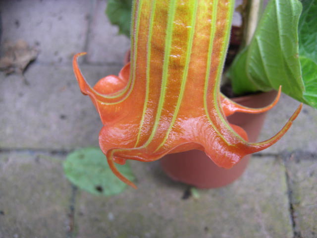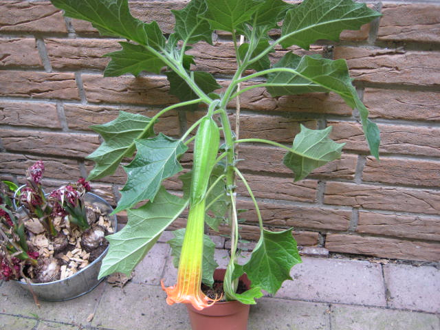 Ik verwacht trouwens een zending met diverse andere koude brugmansias. Met ook andere kleur bloemen maar ook enkele met puur rode bloemen. En koude brugmansias die je mag verzorgen als warme bruggen (volle zon) die snel groeien en in de zomer volop bloeien.