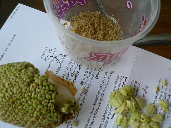 Iedereen is volop aan het zaaien geslagen Ik heb inmiddels ook zaailingen van mijn eigen giant strain . Heb daarom vast wat zaden uit de bessen gehaald om het te drogen en in de ijskast te bewaren . Zitten wel 150 a 200 zaadjes in 1 bes en 1 zaadbol heeft zon 250 bessen dus produceren gigantisch veel zaad .Ik had ook een zakje zaad besteld omdat ik dacht dat het zaad van mijn plant niet goed was , maar dat komt nu toch gewoon uit .