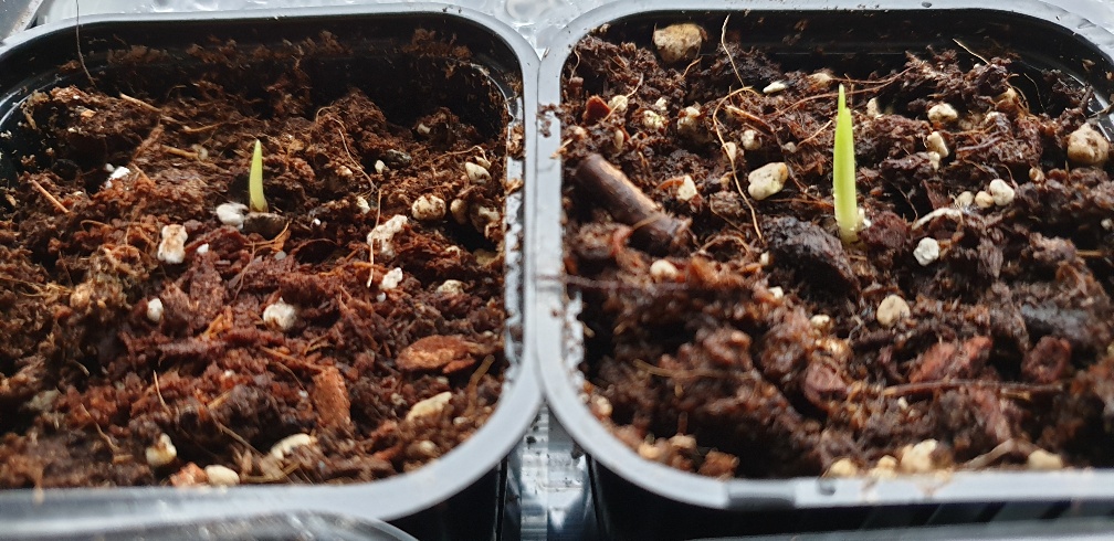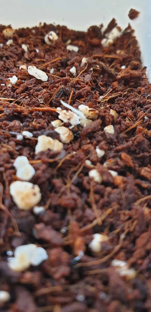 Na 3 kiemers op het perliet in de propagator gezaaid 18 Jan nu ook 1 gezaaid 6 Jan in coco/perliet mix.