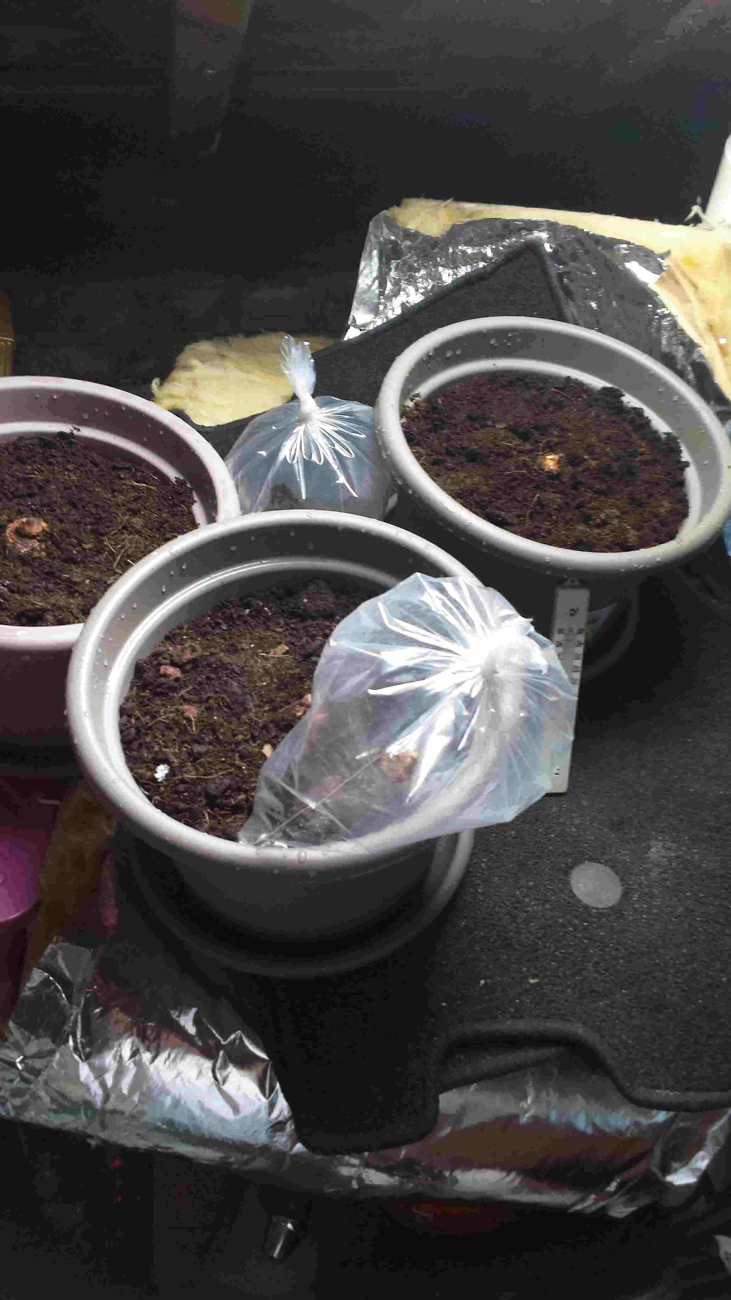 ik heb 4 knollen, heb nu onlangs stekpoeder aangedaan en staan aan de zuidmuur met vochtige grond,
