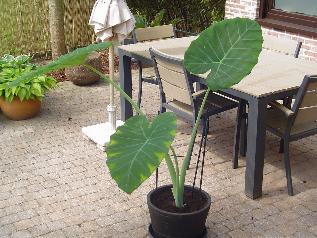 Vandaag de colocasia's buitengezet. Ze zijn de winter goed doorgekomen maar dit resultaat had ik toch niet verwacht.