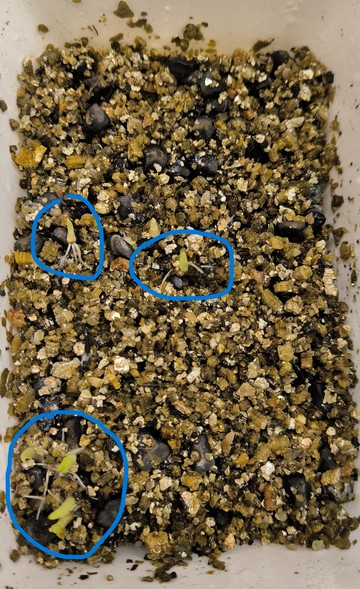 Daarbij heb ik volgende ontkiemde soorten in de bakjes