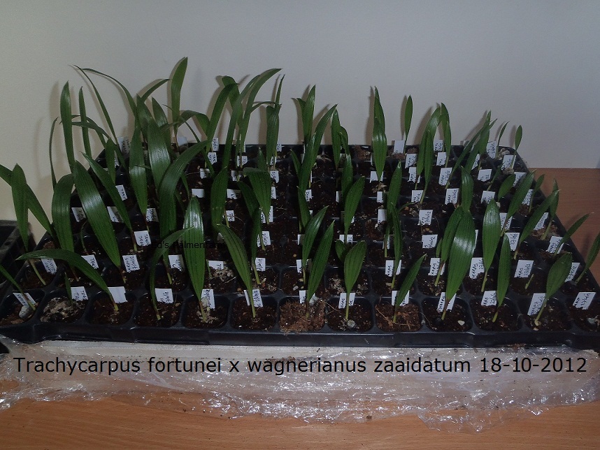 Hier canna in 4 dagen boven de grond, meer kiemers in de bak, meerdere tropische palm soorten.