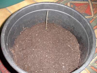 Ik dek mijn potten altijd af met plastic folie tot de zaailing het plastic raakt, dan maak ik een gat in de folie zodat hij kan verdergroeien.