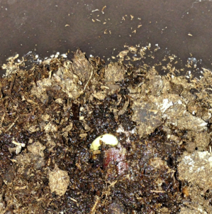Daar zie je immers zelfs nog het zaad zitten en lijkt de kieming wel degelijk naar boven gericht?
