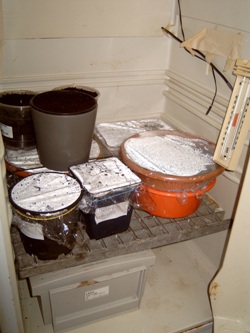 daarna in een verwarmingstoestel gezet op 26 gr en kijk het resultaat na enkele dagen,