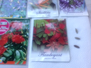 Een vriendin heeft mij een pakje van de Flamboyant meegebracht uit Teneriffe met 3 harde tamelijk grote zaden er in. foto