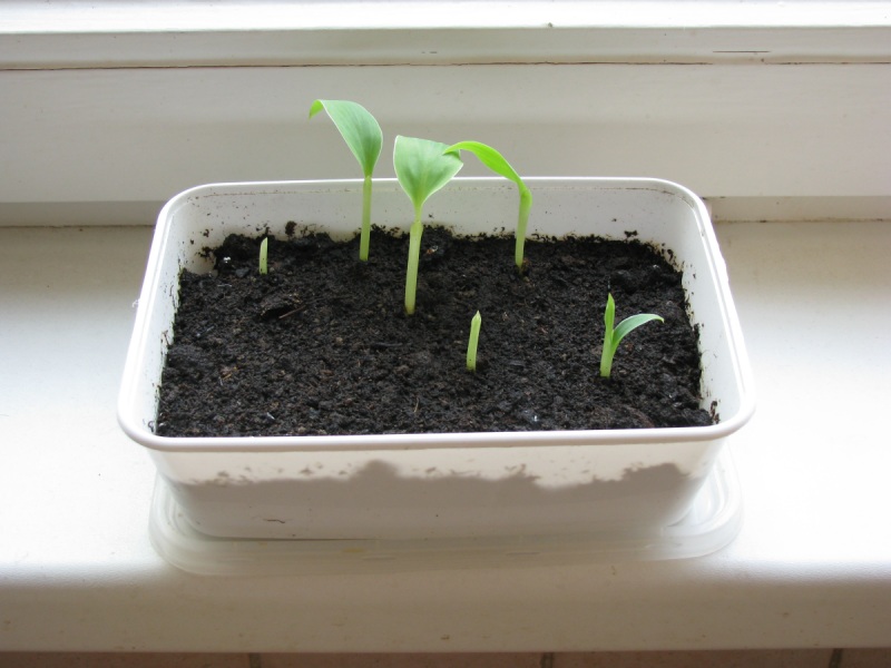 Musa cheesmanni. In dit bakje zijn er een dertigtal gezaaid.