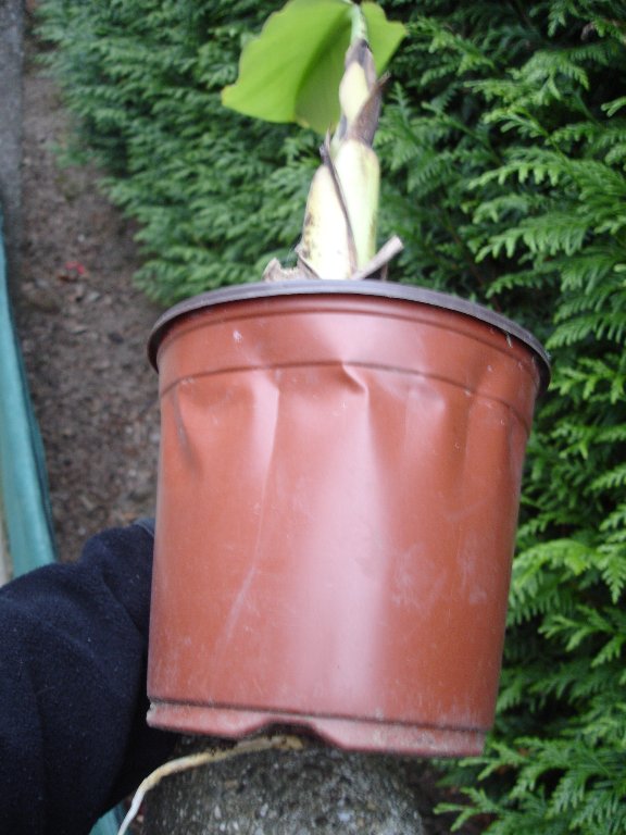 onderaan de pot groeien de wortels er reeds door,dus een banaan zonder wortels kan je ook aan de praat krijgen.
