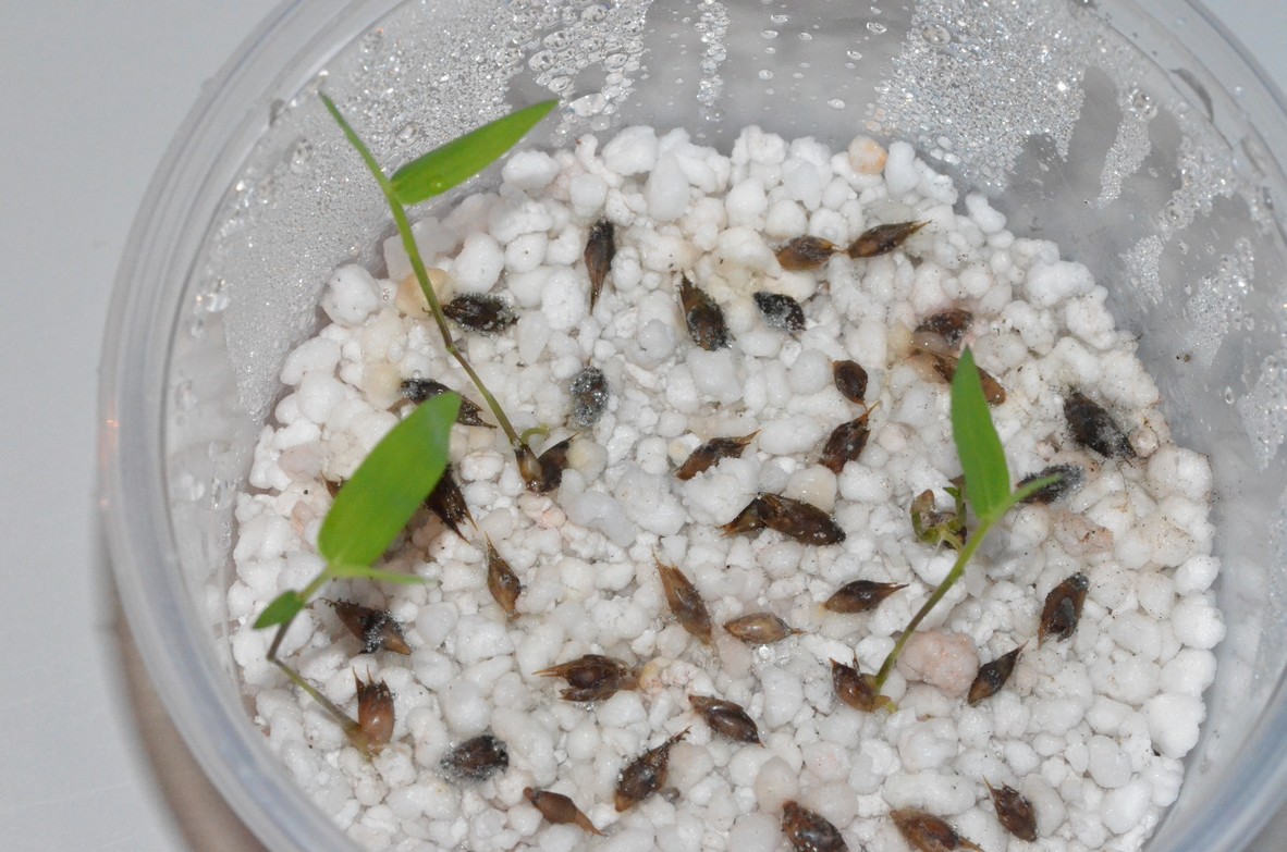 Mijn eerste ervaring met het zaaien van bamboe lijkt succesvol te zijn. Ik vind die minuscule bamboe trouwens prachtig in al zijn eenvoud. Ze doen in ieder geval hun reputatie van het snelst groeiende gras ter wereld alle eer aan.