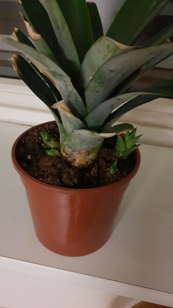 Ook de juiste keuze van ananas werd een sport. Nu 5 planten en 1 pup gever over.