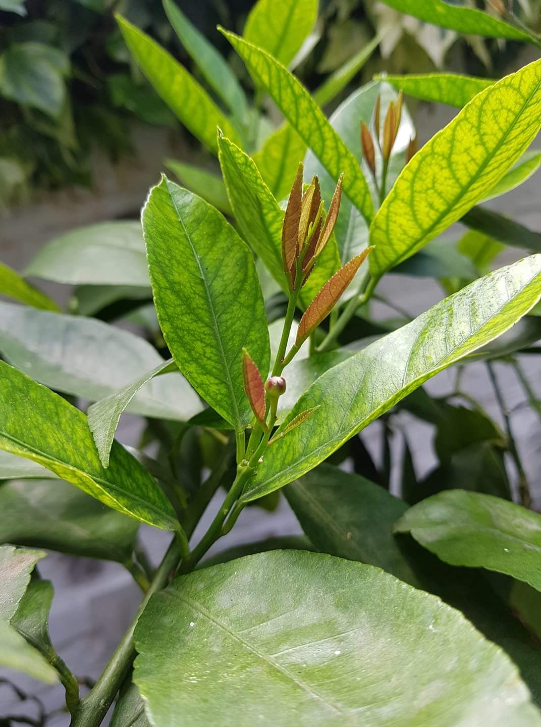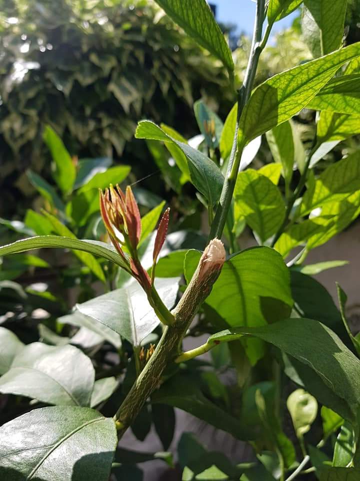 Nu na een flinke snoei beurt heeft de citrus al heel wat kleine citroentjes afgestoten en begint hij alweer uit te lopen. En alweer een nieuw bloempje gespot.