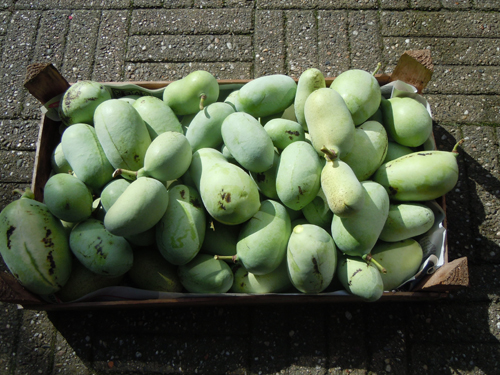 Hitch schreef:Mijn Paw Paw's zijn nu een 5-6 jaar en droegen voor het eerst bloesem nu. Per boompje een bloem of 3. Allemaal kapotgevroren deze nacht. Geen idee hoe koud het juist geweest is. Toen ik om 6.15 u naar het werk vertrok gaf de t° meter in de auto -1°C aan. Minimale vorst dus met toch vrij veel schade hier in mijn tuin.