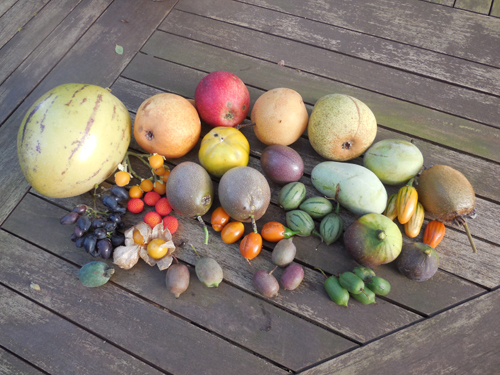 Peter, ziet er niet slecht uit, 13 op 18, tamarillo en klim komkommertjes zijn er niet bij.