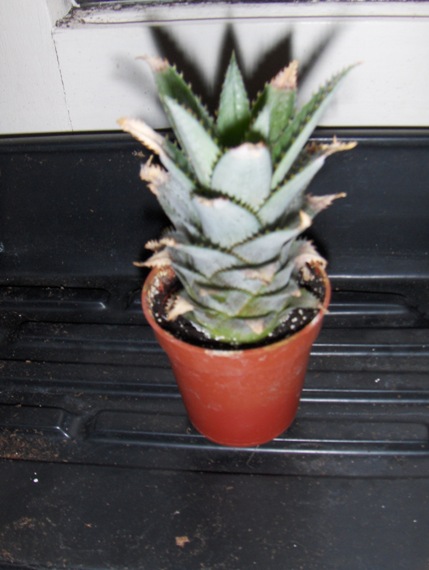Ik heb een aantal maanden geleden een stek van een baby ananas genomen, deze heeft nu geworteld en is beginnen groeien, het potje waarin hij staat is erg krap, omdat ik op internet gelezen had dat dit moest.