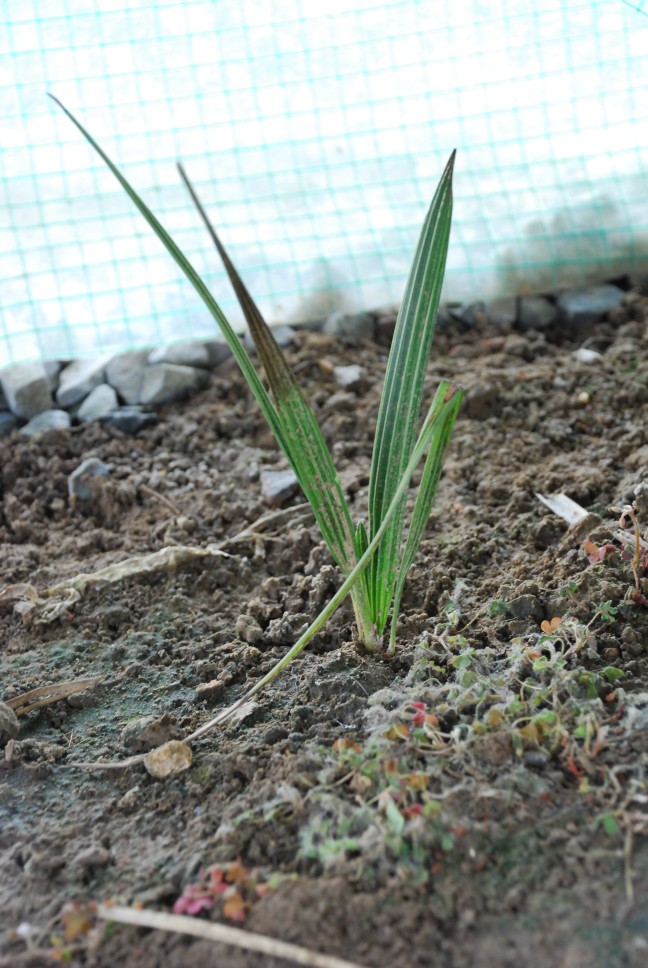 Chamaeropsen groeien als zaailing behoorlijk traag. Zo begint één van mijn Chamaeropsen die ik 2 jaar geleden zaaide pas sinds afgelopen najaar met het eerste gedeelde blad. Ook toen pas werd een beginnend stammetje zichtbaar.