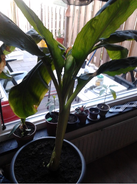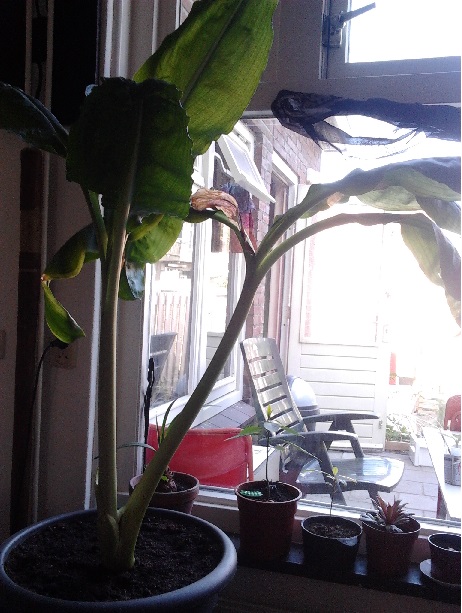 Op de foto zie je hoe de plant op dit moment is, de schuinhangende is de afstervende en de nieuwe staat fier omhoog en zal nog veel groter worden. Hij zal nu met pot mee ruim een meter hoog zijn denk ik.