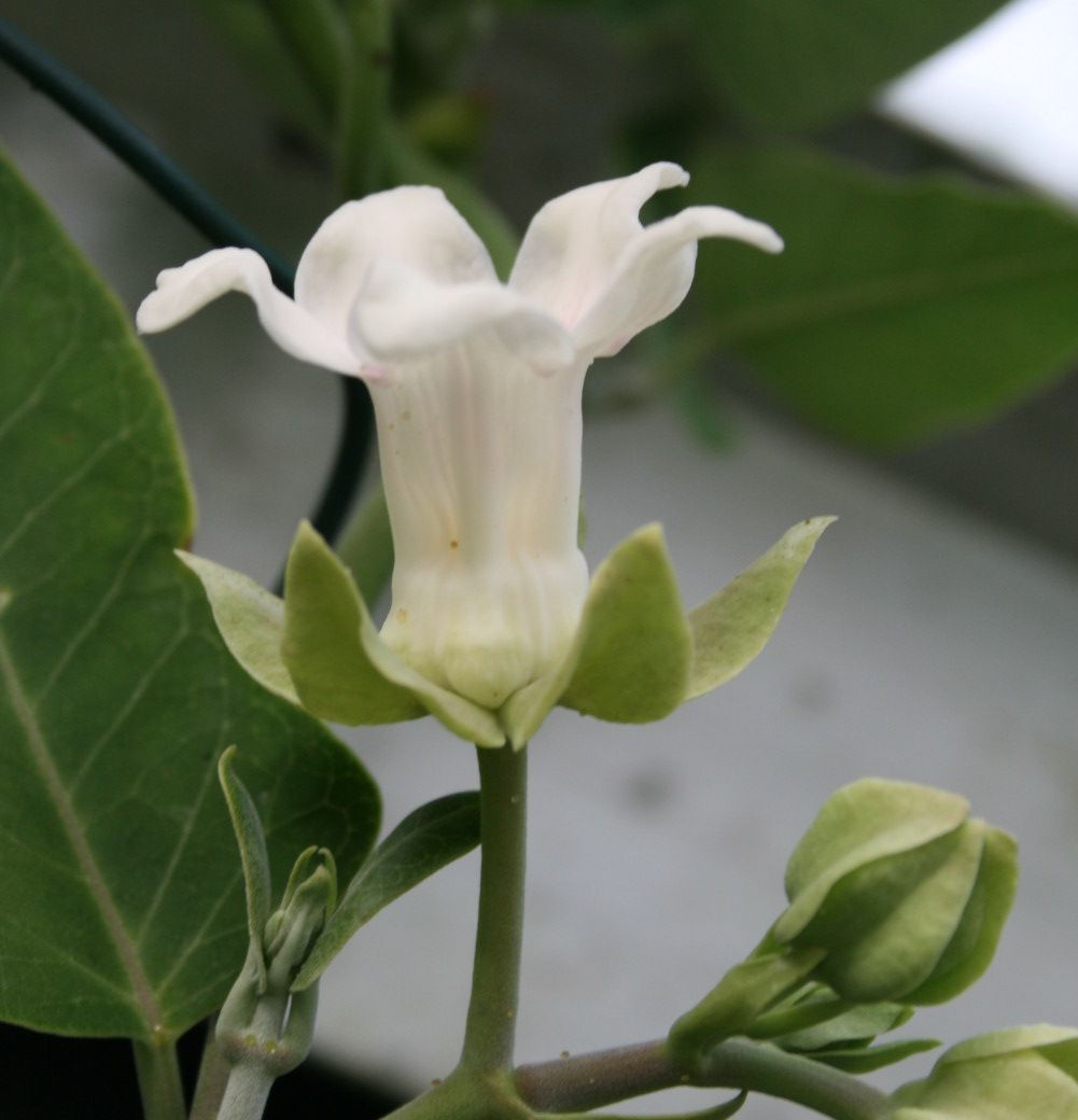 Ik heb uit Spanje een aantal zaden van een klimmer meegenomen, duidelijk een asclepiad. Ik had veel zaailingen, en had er een aantal in de tuin gezet. Tot mijn verbazing hadden ze deze de winter overleeft in de tuin, maar wel met wat vorstschade.