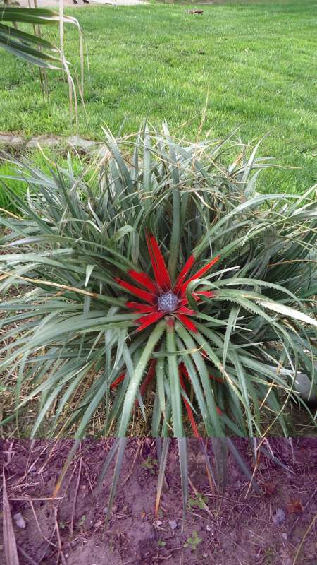 Dit lijkt me Fascicularia bicolor of een verwante soort. Een mooi resultaat Hitch. Hier is deze plant in februari 2012 tot de grond afgevroren. De zwakke herstelpoging van de plant heb ik niet afgewacht.